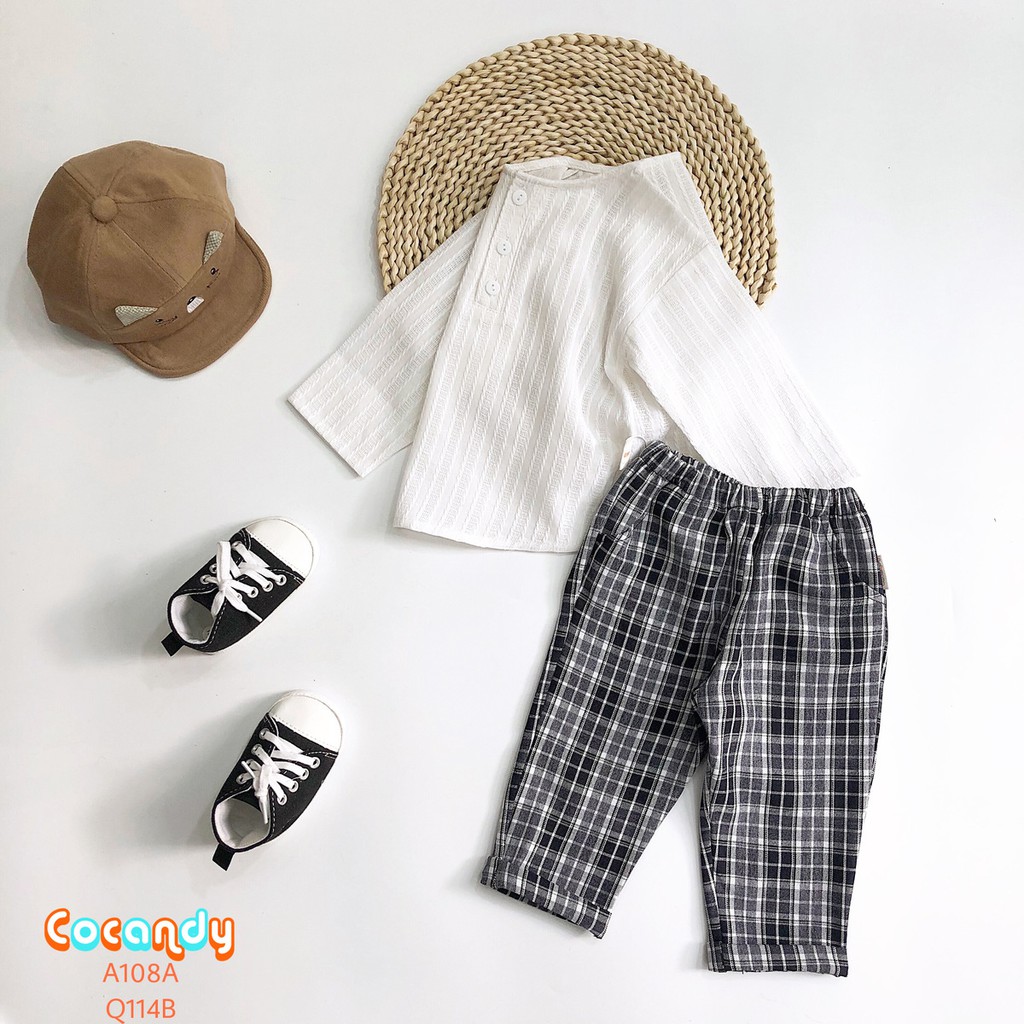 Giới thiệu Quần baggy kẻ caro, áo thêu dài tay trắng cao cấp cho bé