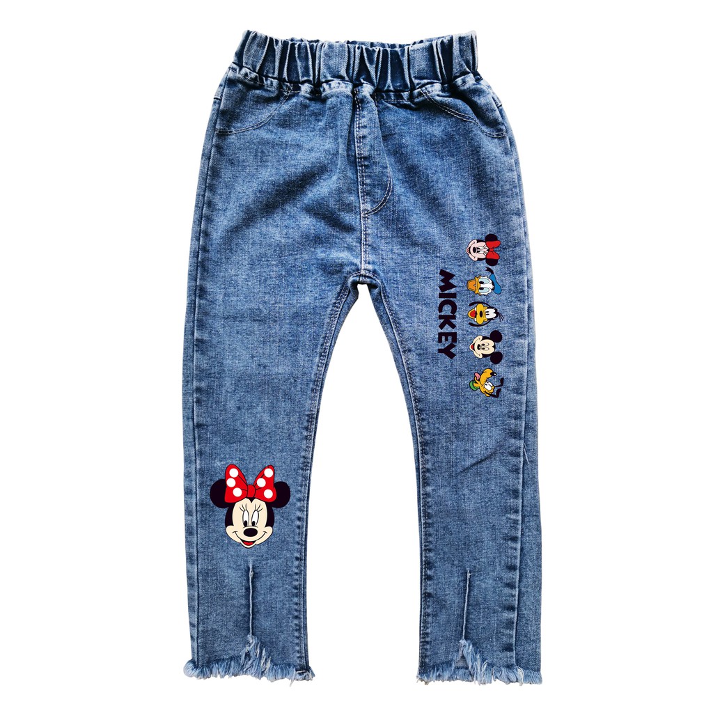 Quần Jean Dài In Hình Chuột Mickey Cho Bé Gái 1-7 Tuổi
