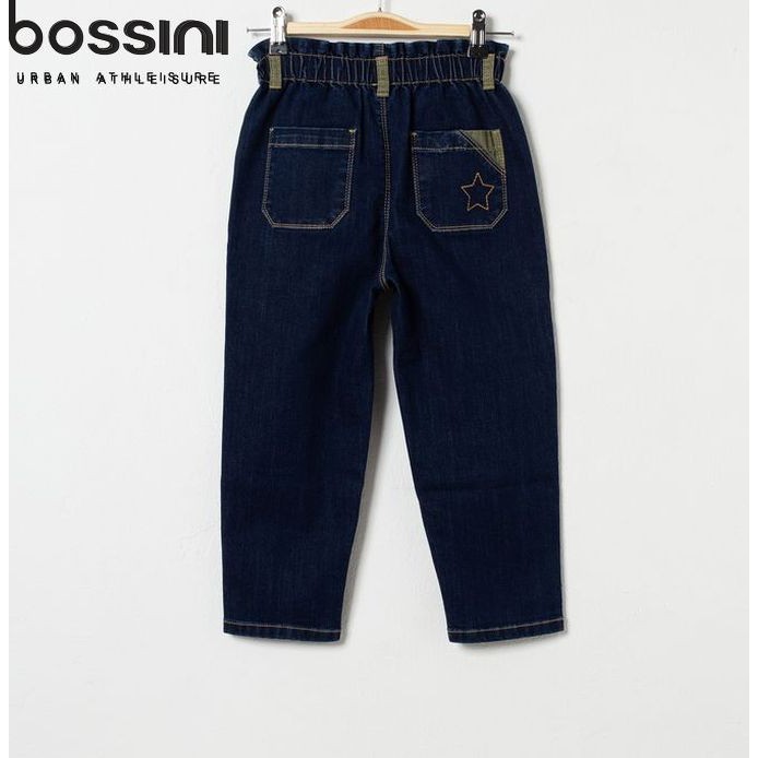 Giới thiệu Quần jean dài lưng thun hình ngôi sao ở túi sau bé gái Bossini 744101000