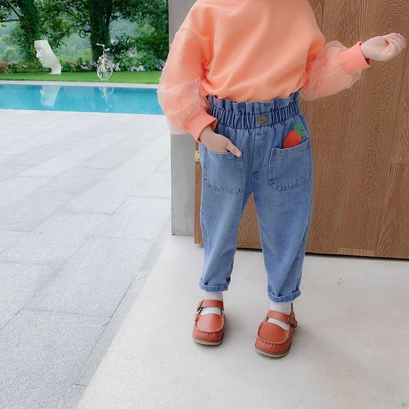 Giới thiệu Quần Jean Ống Rộng Có Túi Họa Tiết Cà Rốt Cho Bé Gái
