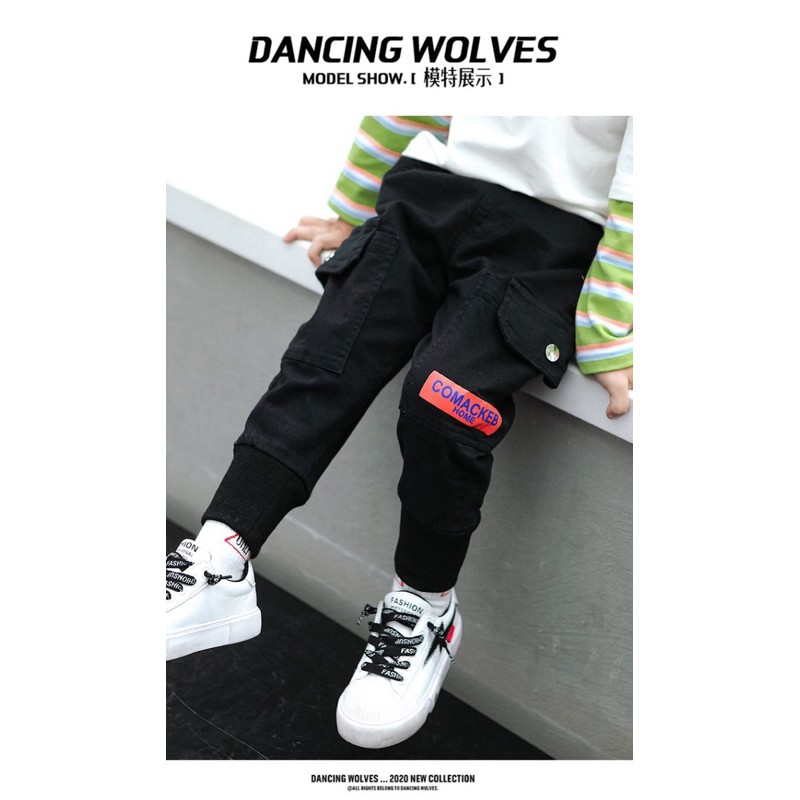 Thời trang trẻ em & trẻ sơ sinh > Quần áo bé trai > Quần > Quần dài || Quần kaki jogger túi hộp in chữ cho bé (8-20kg)