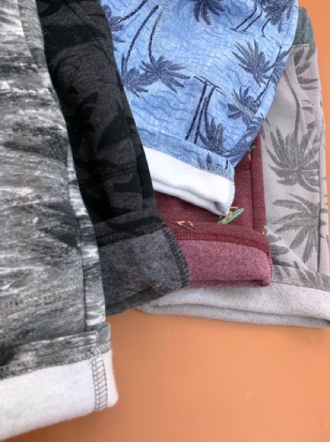 ❤ Quần Shorts nỉ Bông Mỏng In Hình PHỐI Lưng Kare Giả Jean Lưng chun MÀU TRƠN .