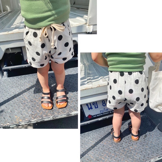 ☘Quần sooc đũi chấm bi phong cách Hàn Quốc mềm mát, dễ thương cho bé gái.
