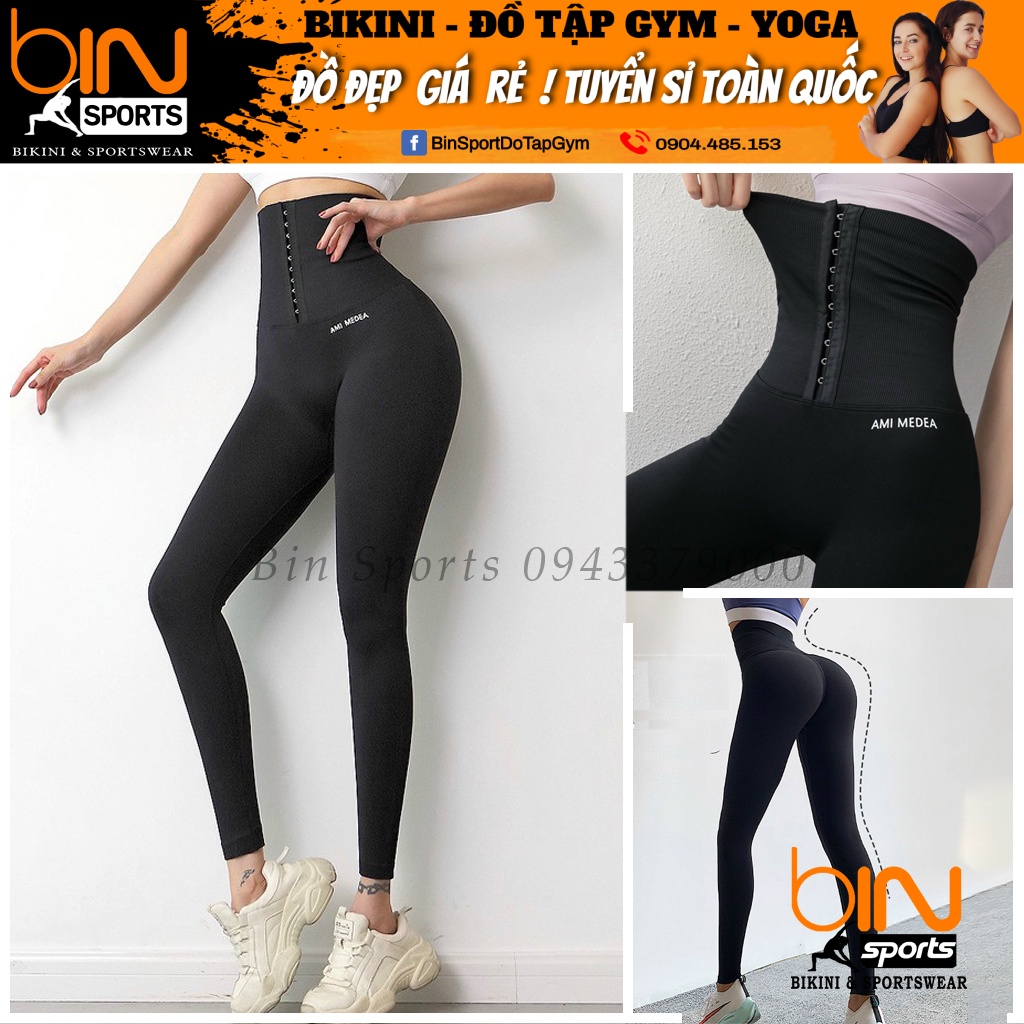 Thể Thao & Dã Ngoại > Thời Trang Thể Thao & Dã Ngoại > Quần Thể Thao || Quần tập gym nữ legging kết hợp latex AMI thun dệt, cạp cao siết eo Bin Sports Q129
