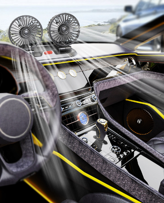 -Điều chỉnh các khớp linh hoạt cho phép bạn trải nghiệm làm mát từ nhiều góc độ, trình điều khiển và ghế hành khách. Đầu của quạt có thể nghiêng lên và xuống 180 độ, và có thể được xoay 360 độ mà không chặn đường ngắm;