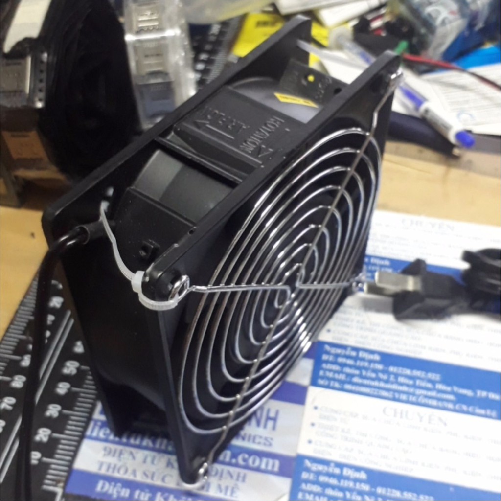 Giới thiệu quạt hút 220VAC SUNON 12038 cạnh 12cm, dày 3.8cm + jack cắm + lưới kde2398
