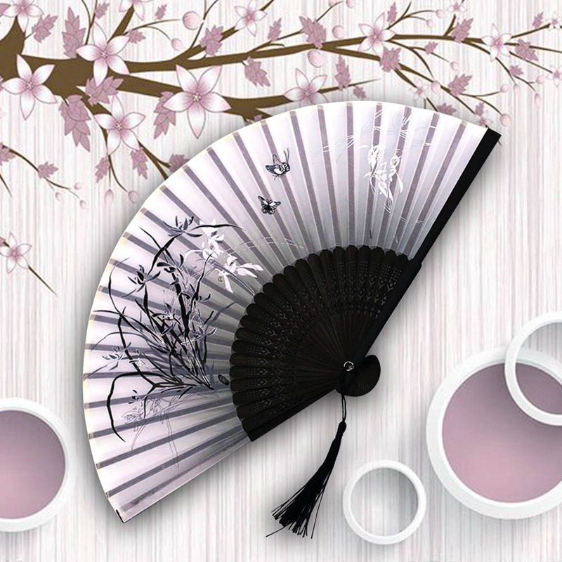 Giới thiệu Quạt xếp cầm tay bằng tre in họa tiết hoa phong cách Trung quốc dùng làm quà độc đáo