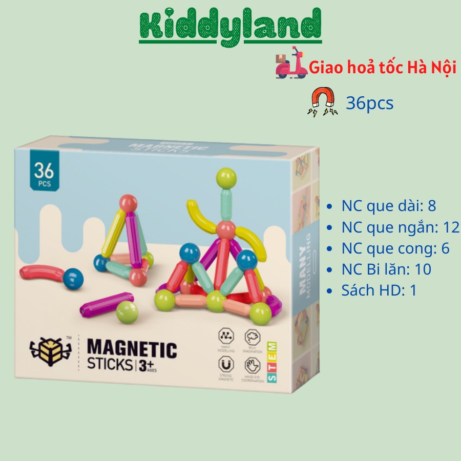 Giới thiệu Đồ chơi Que từ tính tròn lắp ráp xếp hình khối nam châm MAGNETIC STICKS 36 chi tiết
