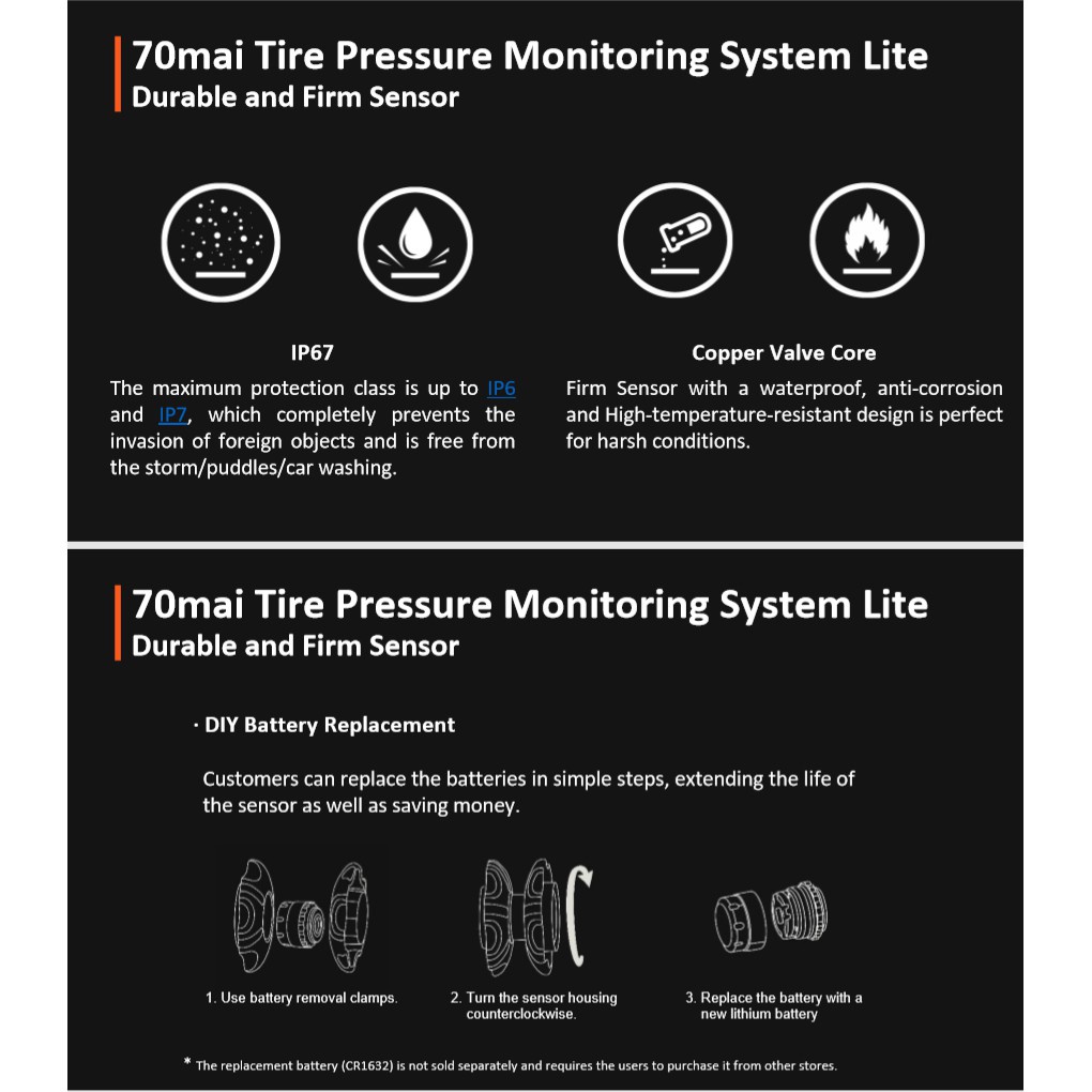 Giới thiệu [QUỐC TẾ] Cảm biến áp suất lốp Xiaomi 70mai Lite - Thiết bị đo áp suất lốp và nhiệt độ Xiaomi 70mai