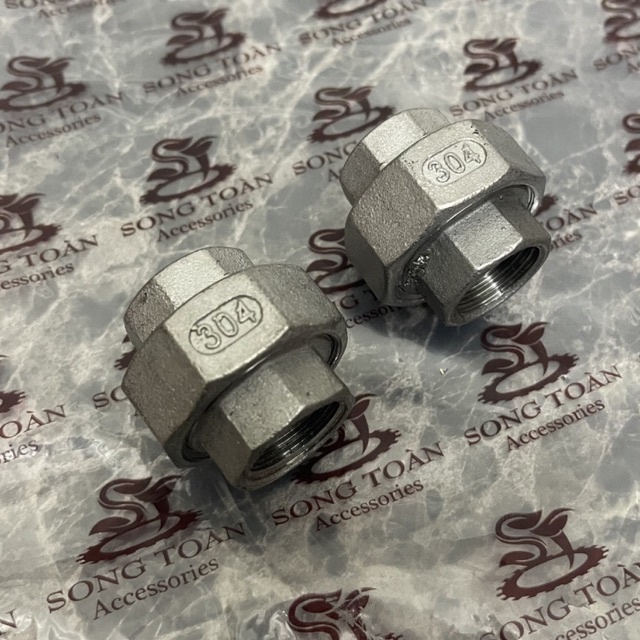 [RẮC CO INOX] Ren trong nối hai đầu BSP hệ G, Có gioăng cao su phần đai giúp kín nước - Chất liệu Inox