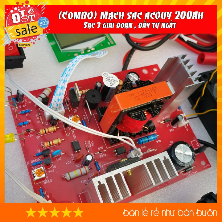 Mạch sạc acquy 12V / 24V 200Ah Sạc 3 Giai đoạn đầy tự ngắt, hiển thị màn hình LCD English