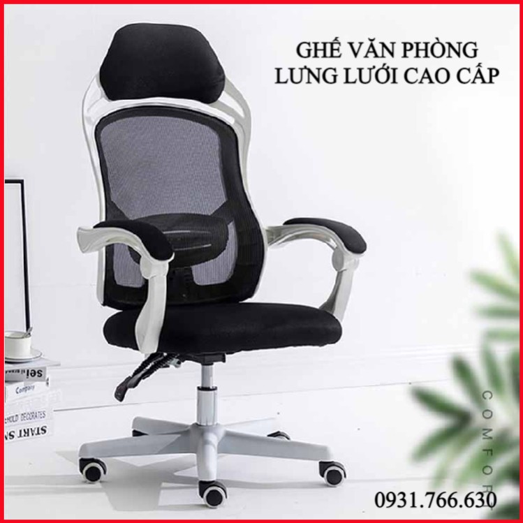 *** Ưu điểm vượt trội: - Hình thức sang trọng, đẹp mắt và độc đáo bởi thiết kế tựa đầu vòng cung. - Thiết kế đường nét tinh tế theo đúng tư thế ngồi, tạo cảm giác thoải mái nhất khi ngồi làm việc. - Tích hợp đệm thắt lưng. Tùy chỉnh độ cao lên xuống. - Tựa lưng trợ lực tam giác - Chống ê mỏi cổ, lưng, hạn chế các bênh về xương khớp. - Lưng lưới thoáng khí, tản nhiệt. - Trụ pittong thủy lực đạt tiêu chuẩn SGS. Cực kì chắc chắn, linh hoạt. - Dễ dàng thay đổi chiều cao ghế . - Chân xoay 360° . Cấu tạo chắc khỏe, chịu được tải trọng lên tới 250kg - Phù hợp vơi những người thường xuyên ngồi liên tục hàng giờ