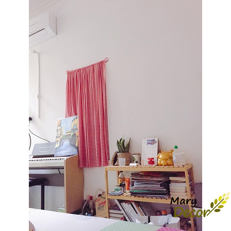 Giới thiệu Rèm cửa đẹp vải bố linen trang trí nhà cửa giá tốt - họa tiết Caro đỏ R-A03
