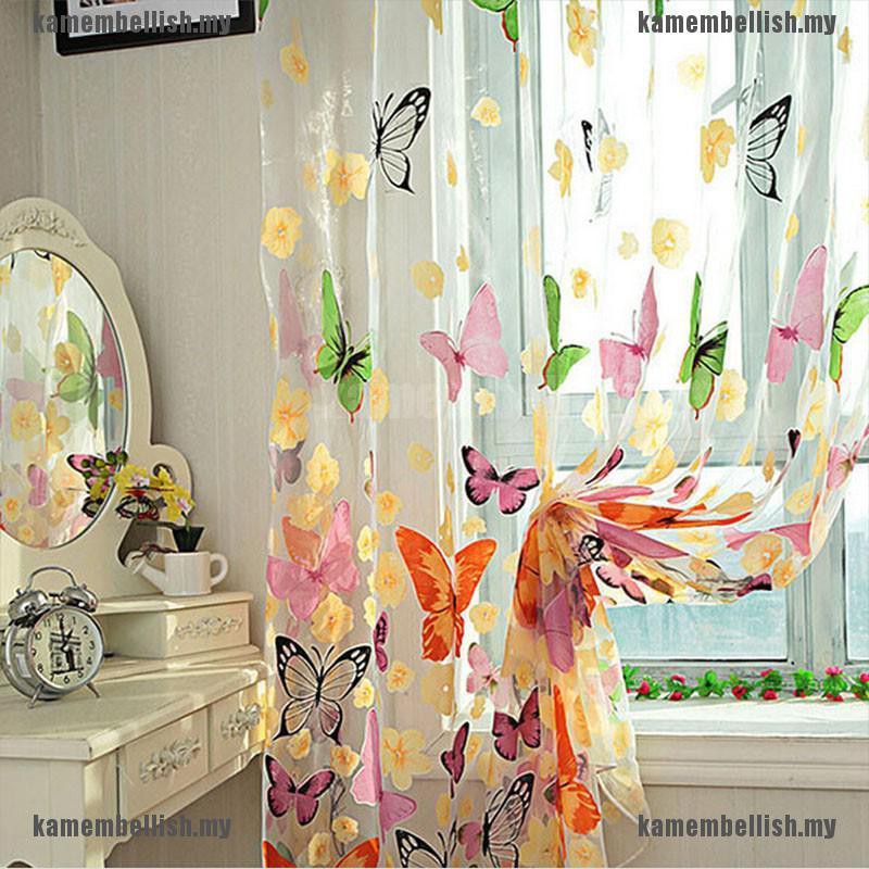 1 Pcs Butterfly Print Sheer Curtain