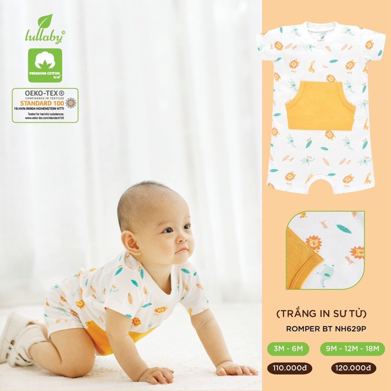 Giới thiệu Romper, Body liền quần cộc bé trai/gái Lullaby NH629P (Sz 3-18m)