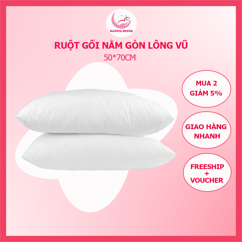 Sản phẩm RUỘT GỐI LÔNG VŨ có kích thước: 50x70cm, độ phồng 15cm.