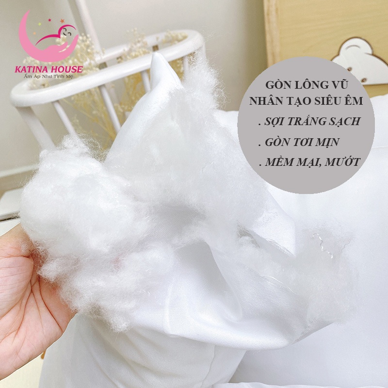- Gối không chỉ mang lại cảm giác êm ái dễ chịu, mà còn không có mùi như lông vũ tự nhiên, được xử lý nghiêm ngạch nên những sợi bông trở nên vô trùng, vô khuẩn rất an toàn cho người sử dụng.