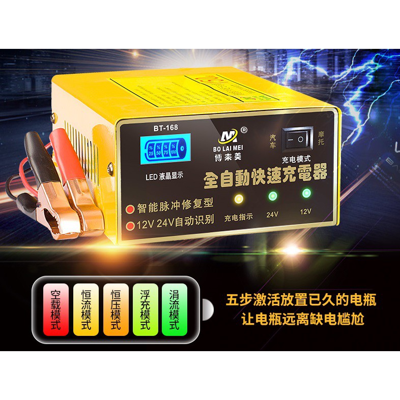 - Tự động sạc theo 4 chu kỳ và chỉnh dòng sạc phù hợp với dung lượng Acquy 12/24v từ 3.5ah đến 150ah.