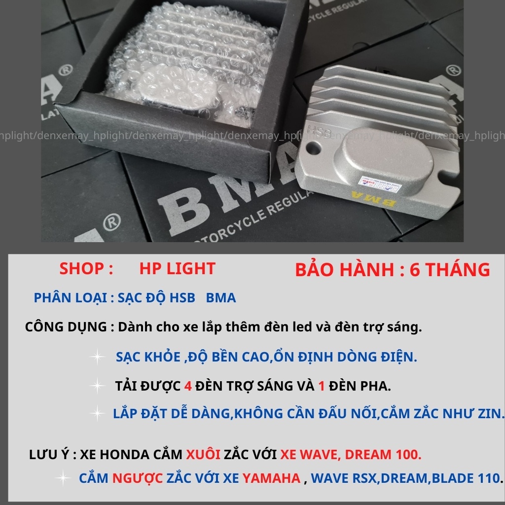 - Sản phẩm sạc HSB đang rất đc ưa chuộng cho những anh em lên đèn khi sạc zin theo xe không đủ để cấp điện đầy bình.