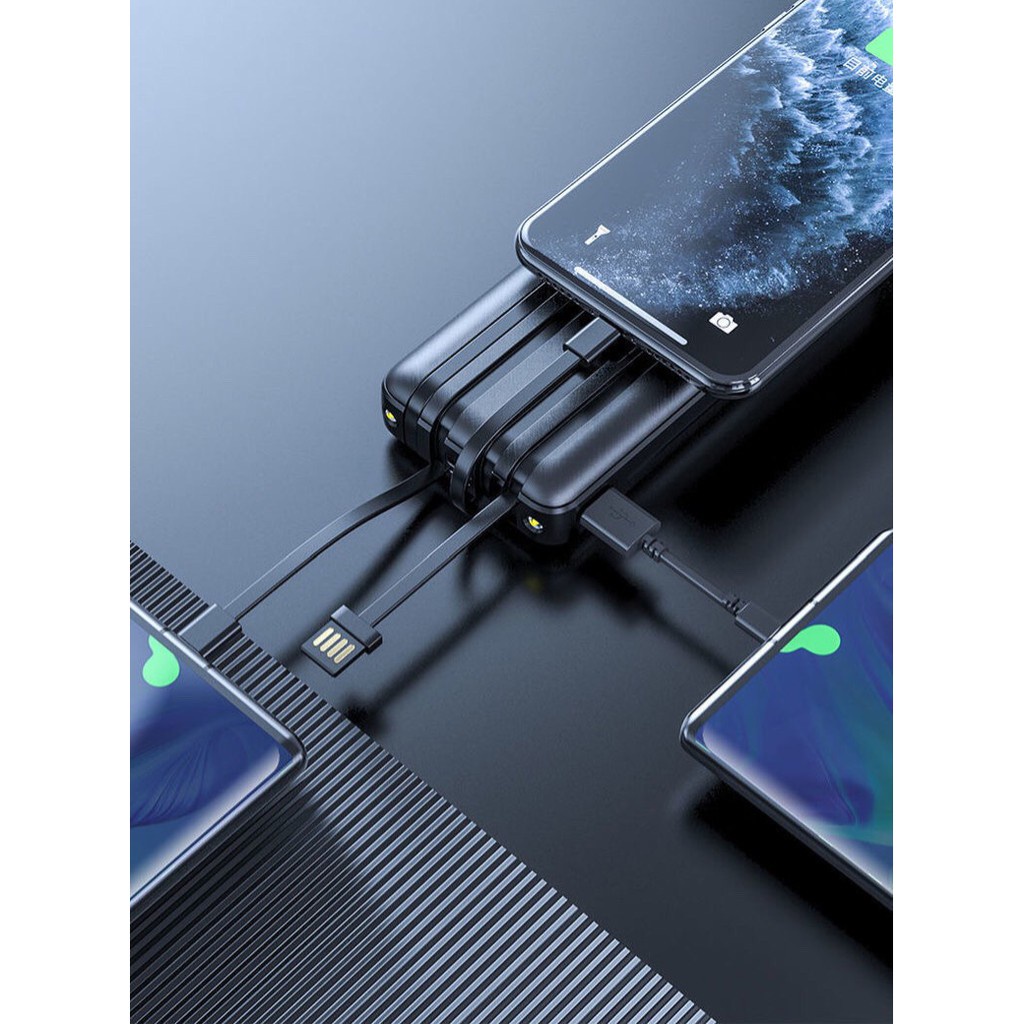 Giới thiệu Sạc Dự Phòng 10000mAh 5 trong 1 tích hợp 4 dây sạc tiện dụng kèm đèn pin