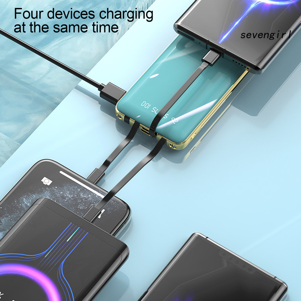 Description: There are three charging cables for iPhone, Micro and Type-C and a USB output interface on the power bank, so you are able to get four devices charged at the same time. You are able to fully charge your mobile phone quickly as the power bank has 10000mAh large capacity and adopts fast charging technology. The power bank is made of high quality ABS material, so it is durable for long-time use. The length of the power bank is 14.5cm, the width is 6.9cm and the thickness is 1.9cm. It fits for both indoor and outdoor use such as camping, business trip, travelling and so on in order to charge your phone conveniently.