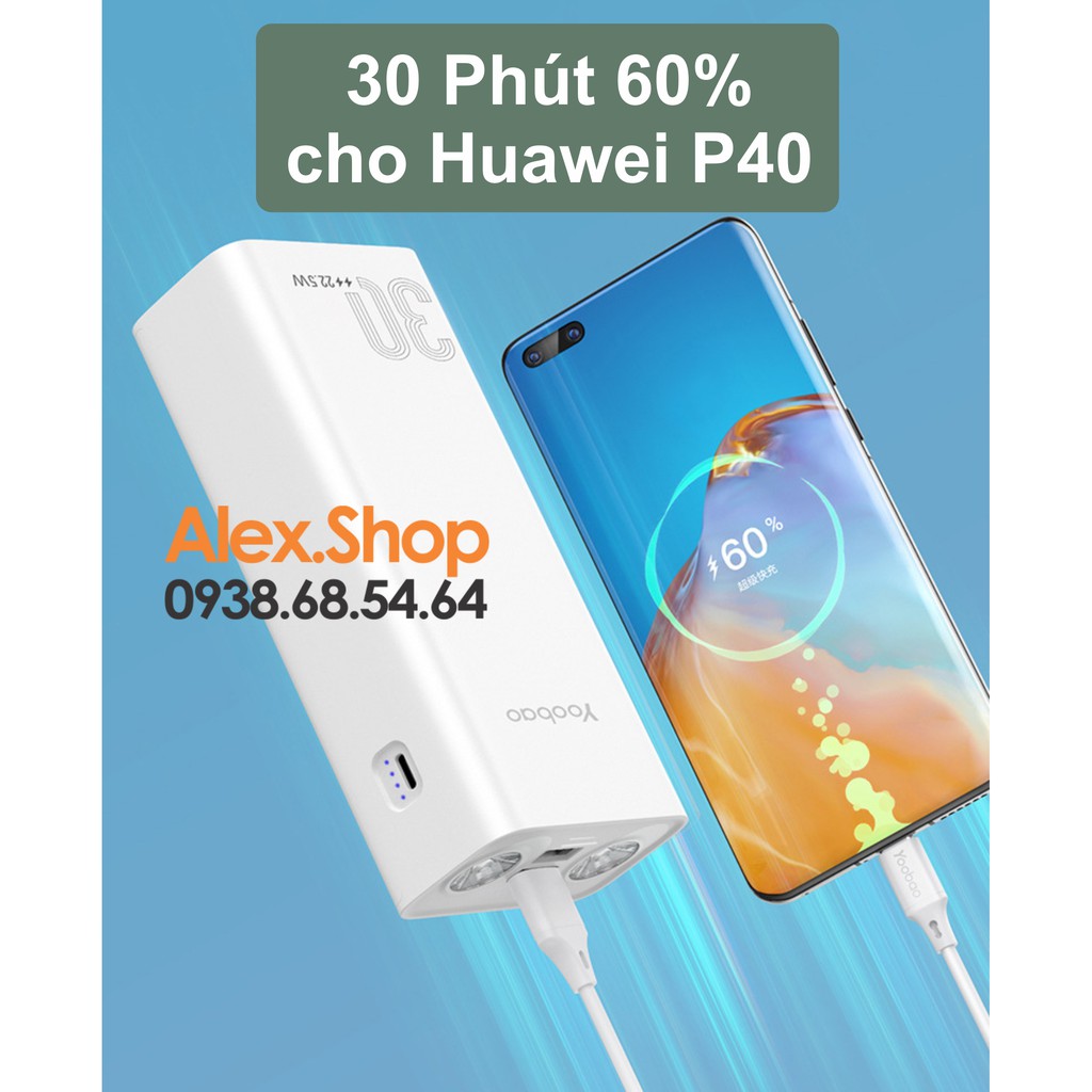 Sạc Dự Phòng Khủng Siêu Nhanh Yoobao 22,5W Đèn Pin Siêu Sáng 30000mah Du Lịch Dã Ngoại Cần Nguồn Năng Lượng Cao