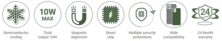 - Các nam châm được căn chỉnh hoàn hảo, tạo lực hút chắc chắn với thiết bị điện thoại di động, cung cấp khả năng sạc không dây và tản nhiệt nhanh hơn