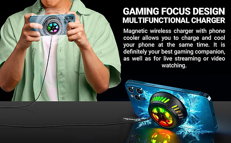 - Sạc cho phép bạn vừa sạc vừa làm mát thiết bị cùng lúc, sự lựa chọn tối ưu nhất khi chơi game, live streaming hoặc xem video