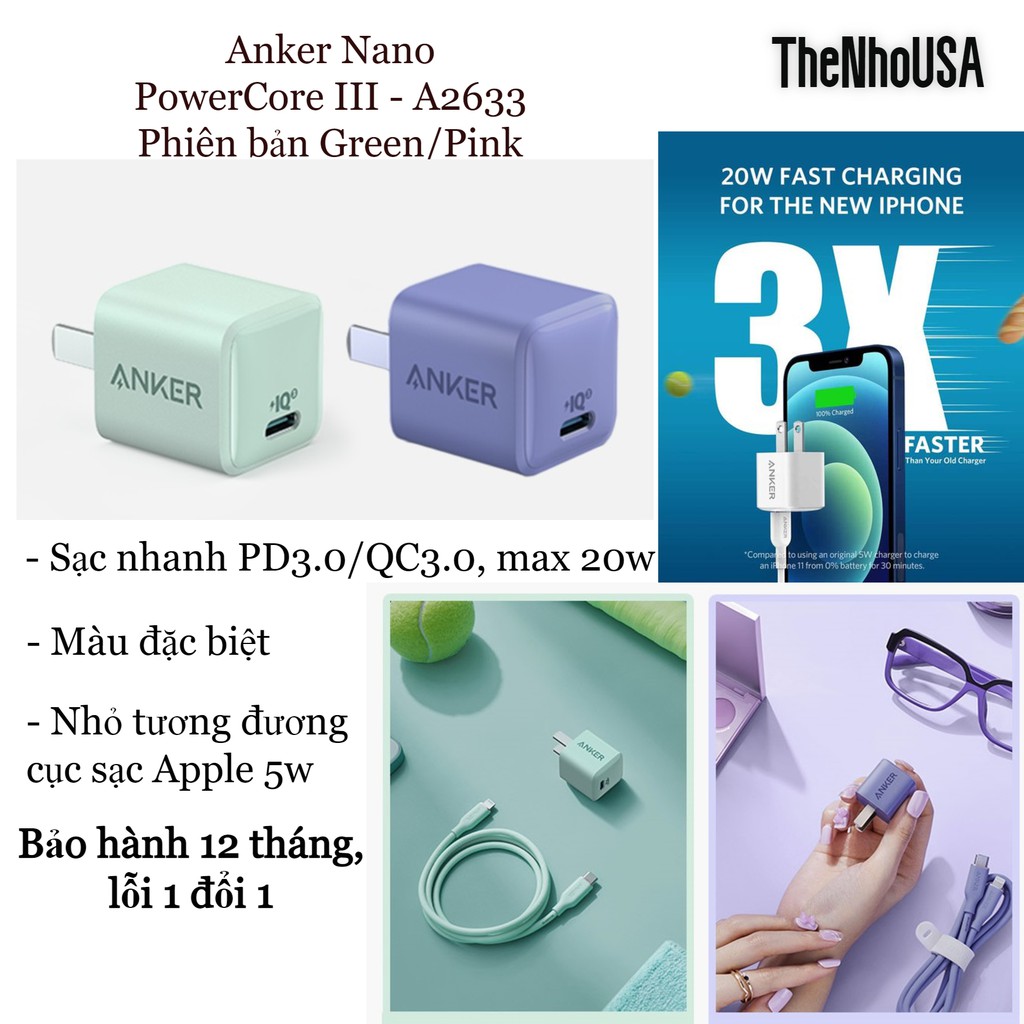 ✅ Củ sạc Anker PowerPort Nano Powercore III 20w - A2633 phiên bản Green/Lavender Grey (2021)