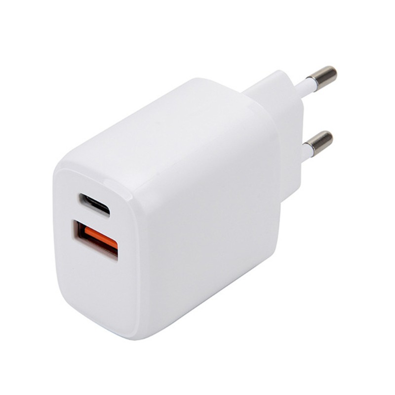Specifications: Power: 20W Color: White Type: US/EU Plug Charging port: Type-C+USB-A Input: AC100-240V, 50/60HZ, 0.5A Output: 1.Type-C: DC5V=3A, DC9V=2.25A, DC12V=1.5A 2.USB-A: DC5V=3A, DC9V=2A, DC12V=1.5A 3. C+A: DC5V=3.6A (Max) automatically distribute current according to equipment Quantity: 1Pc