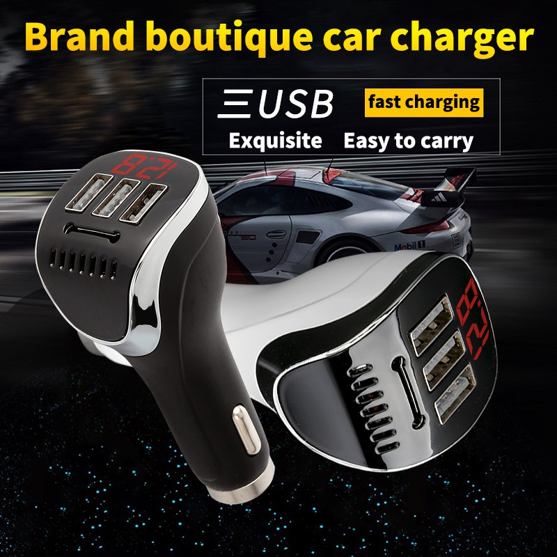 Product parameter: Product name: Smart car fast charger Color: black, white Product model: 3.1A Main material: ABS+PC fire rating V0 Input voltage: 12V/24 Output voltage: 5V3.1A (3USB) output Digital display: Yes Compatible functions: smart matching mobile phones, tablet computers; Android and IOS systems, game consoles, MP3, MP4 Product features: air purification, fast charging with 3 ports, intelligent positioning, safety hammer, with cutter.