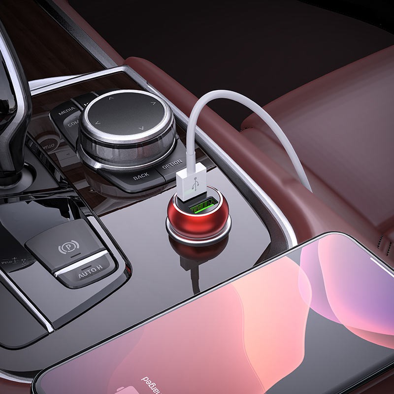 1. Chất liệu sạc xe hơi: PC + vòng kim loại.