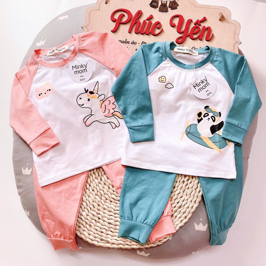 Giới thiệu Sale !!!Bộ Dài Tay Cotton 100 % Minky Mom In Họa Tiết Động Vật Thú Lướt Ván_super Sale ( 7-19kg) (1327)