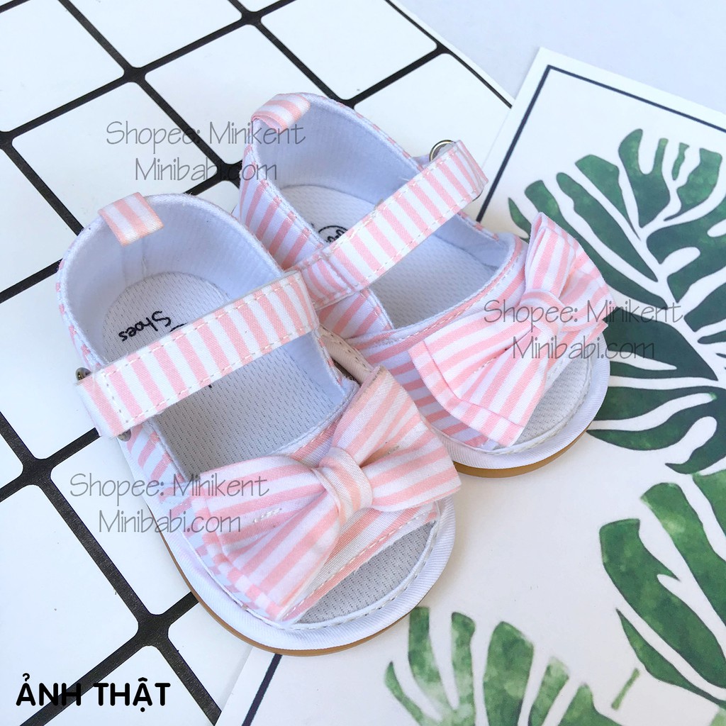Giới thiệu Sandal tập đi đế mềm đính nơ bé gái 0-18M