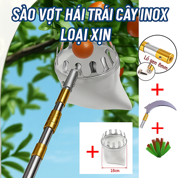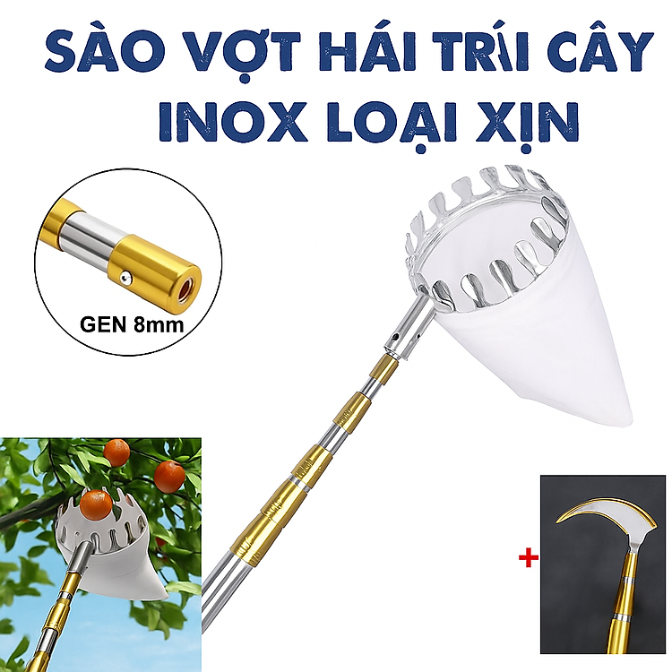 - Vợt hái trái inox: Hái trái nhanh chóng, hạn chế dập nát.