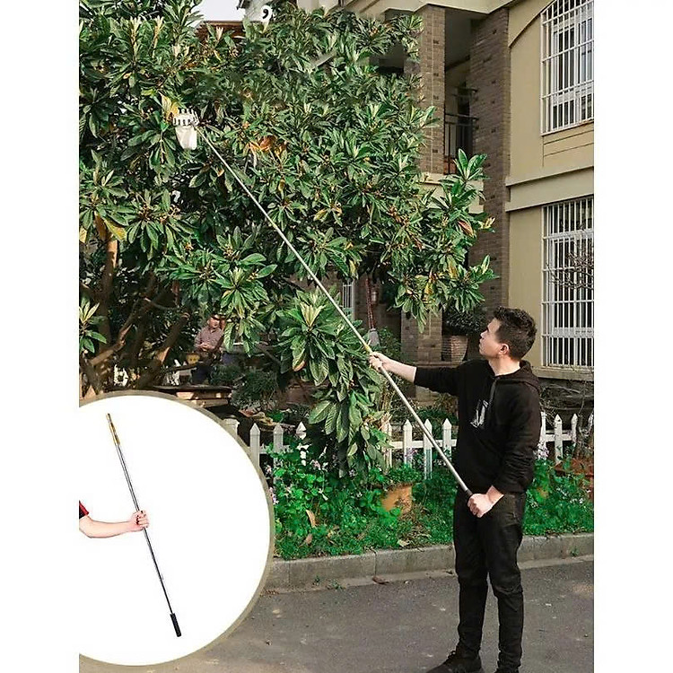 - Sào rút dài linh hoạt (3 mét – 7m): Dễ dàng điều chỉnh độ dài, hái trái ở những cành cao mà không cần thang.
