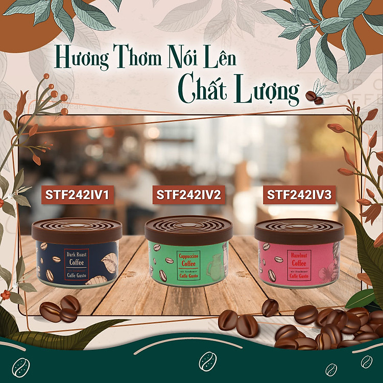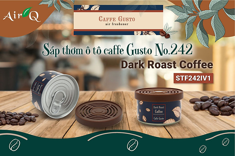 - Sáp thơm ô tô AIR-Q CAFFE GUSTO NO242IV-1 Dark Roast Coffee 36g được chế tạo với công thức đặc biệt của các chuyên gia hàng đầu tại Đài Loan, với hương thơm chiết xuất cà phê giúp bạn thư giãn thoải mái trên những chặng đường, thiết kế hộp xoay thông minh tiện dụng giúp lưu trữ hương thơm lâu dài.