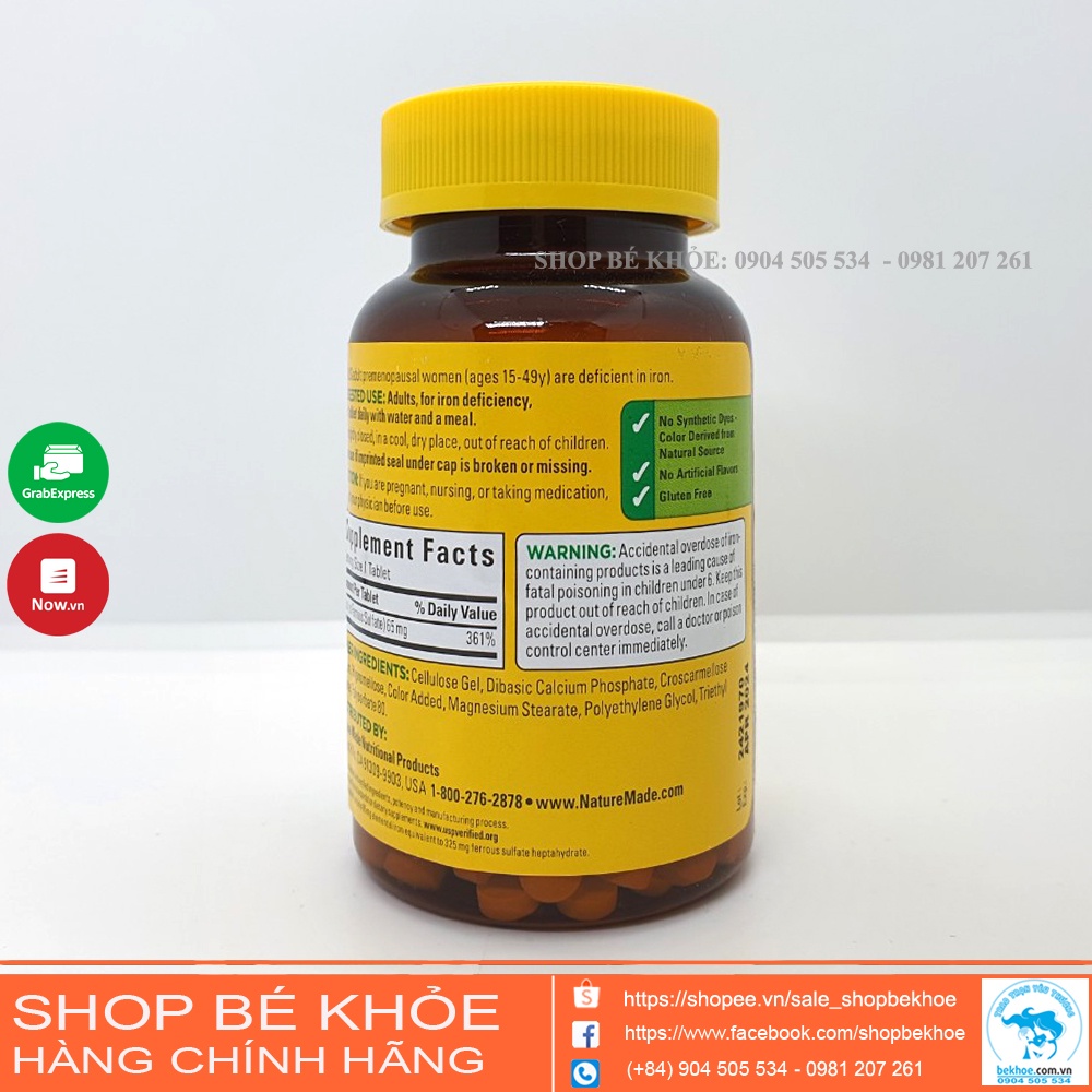 * HƯỚNG DẪN SỬ DỤNG:Sắt Iron Nature Made - Uống mỗi ngày 1 viên sau bữa ăn, bảo quản nơi khô thoáng * Xuất sứ: Nature made #Sắt #Iron #nature #Bekhoe #Shopbekhoe #sat #babau #BAU #SAUSINH