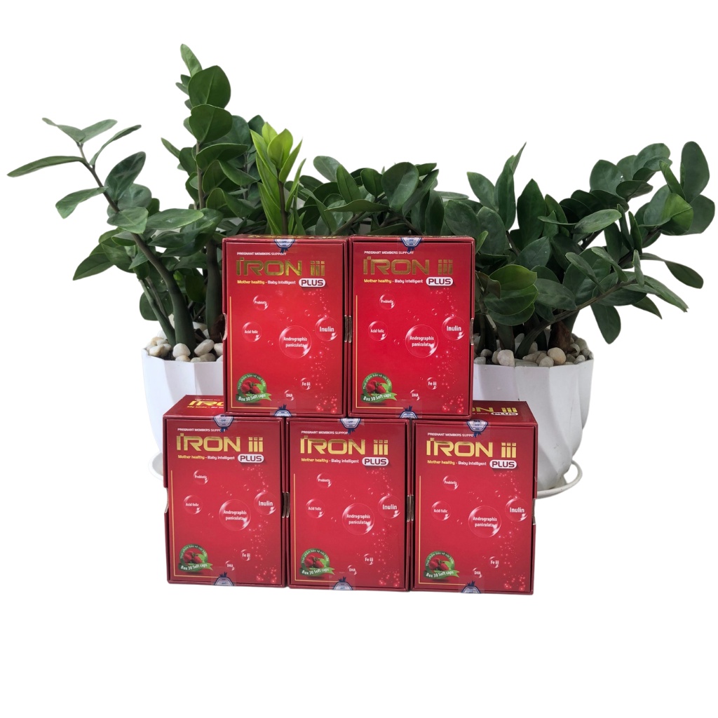 2. Tính chất, công dụng của Viên nang mềm bổ bà bầu IRON iii: - Acid folic Hàm lượng cao 1000 mcg là đảm bảo được tiêu chuẩn của CDC và FDA Hòa Kỳ (từ 400 – 600 mcg đối với phụ nữ thai kỳ và >1000 mcg ở những gia đình có tiền sử khiếm khuyết ở ống thần kinh) - DHA 100mg giúp hạn chế mẹ bầu sinh non, chống tiền sản giật, trầm cảm sau sinh, giúp bé phát triển tốt về thị giác và trí lực - Sắt với hàm lượng đủ >30 mg/ngày, giúp hạn chế tình trạng thiếu máu của mẹ mang thai - Lysin kế hợp kẽm giúp mẹ bầu ăn ngon, đảm bảo đủ chất dinh dưỡng cho thai nhi - Inulin kết hợp vitamin C giúp chống táo bón trong thai kỳ - Vitamin B12 hàm lượng chuẩn giúp chống dị tật thai nhi ở ống thần kinh - Đặc biệt, trong sản phẩm còn có sự kết hợp của Chiết xuất: Dâu tây – rễ gừng – xuyên tâm liên giúp giảm ốm nghén và phòng ngừa táo bón