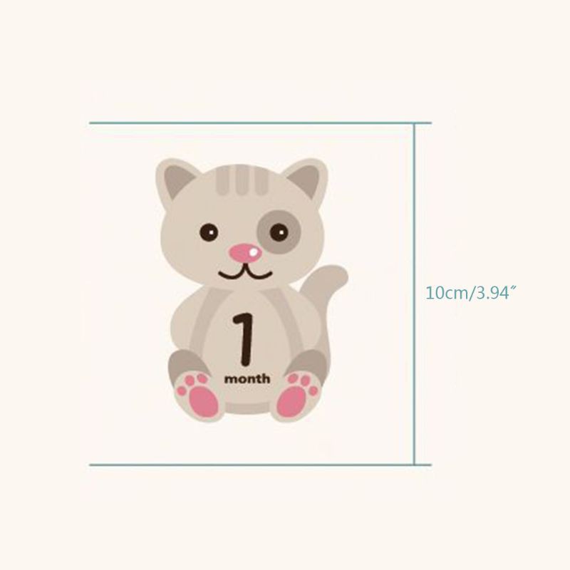 100% brand new and high quality Features: Product quality assured, environmentally friendly printing. Cute cartoon animal stickers that record the perfect way to grow your baby. Suitable for male and female baby stickers. Stick the sticker on the clothes or other places you need, easy to paste, easy to tear off, leaving no traces. Each set of stickers has a total of 12 pieces, you can give the baby a photo, a hundred days to use, record the baby's cute state every month. Sticker only, other accessories demo in the picture is not included!