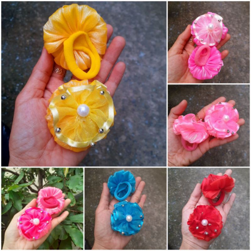 Giới thiệu Sét 2 Cột tóc vải đính hoa cho bé (loại hoa to)