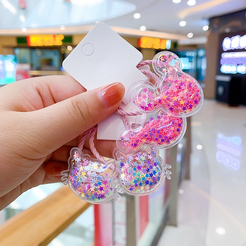Giới thiệu Set 2 Dây Buộc Tóc Hishop Trang Trí Mặt Trong Suốt Có Kim Tuyến Chảy Phong Cách Hàn Quốc