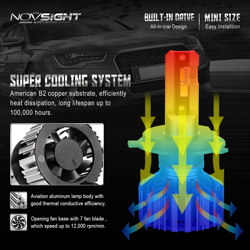 Giới thiệu Set 2 đèn pha NovSight N11S siêu sáng cho xe hơi H7 H4 H11 6000K 10000LM 60W