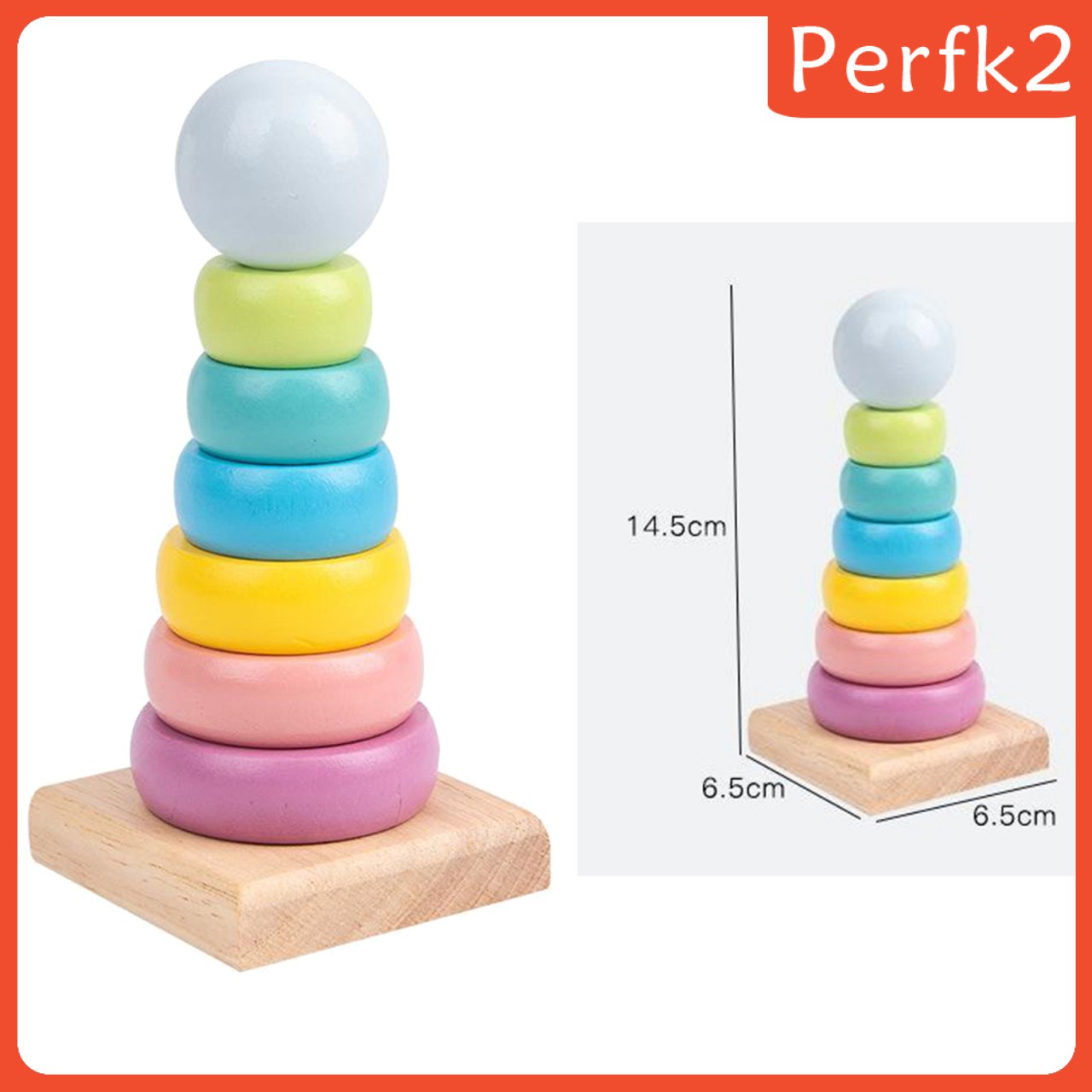 Description: Includes rainbow stacker classic toy features 8 smooth, easy-to-grasp wooden pieces to stack on a solid-wood rocking base. Made of high quanlity durable and child-safe materials wooden and paint. This ring stacker features brightly colored and smoothly sanded pieces that help kids baby to build early shape, color, and size-differentiation skills. Montessori shape-sorting cube to round out the hand-eye co-ordination, visual perception,imagination- and creativity-sparking game toy. Great for kids 18 months and up. Specification: Material: Wooden Size Chart: Size(LxWxH): approx. 6.5x6.5x14.5cm/2.56x2.56x5.71inch. Package Includes: 1 Set Stacker Classic Toy Note: Please allow slight dimension difference due to different manual measurement.