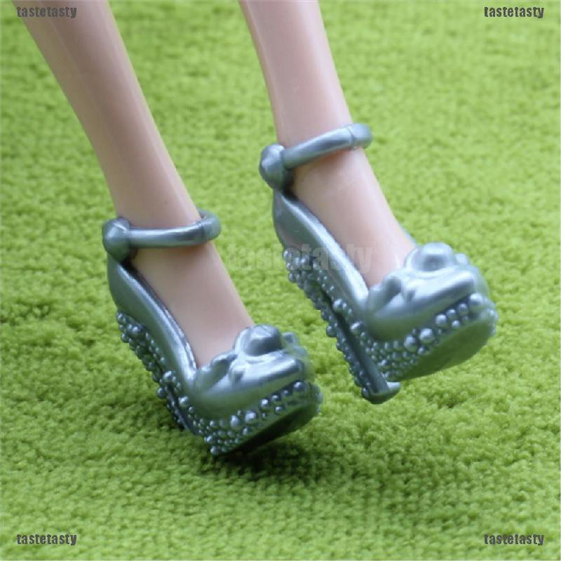 【Taste】2pairs Silver Grey Shoes Summer High Heels Sandal Accessories For Doll GiftCondition: Handmade and 100% New