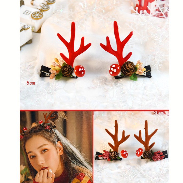 Giới thiệu Set 2 kẹp tóc Noel sừng tuần lộc trang trí đáng yêu lạ mắt BBShine (2pcs) – P124