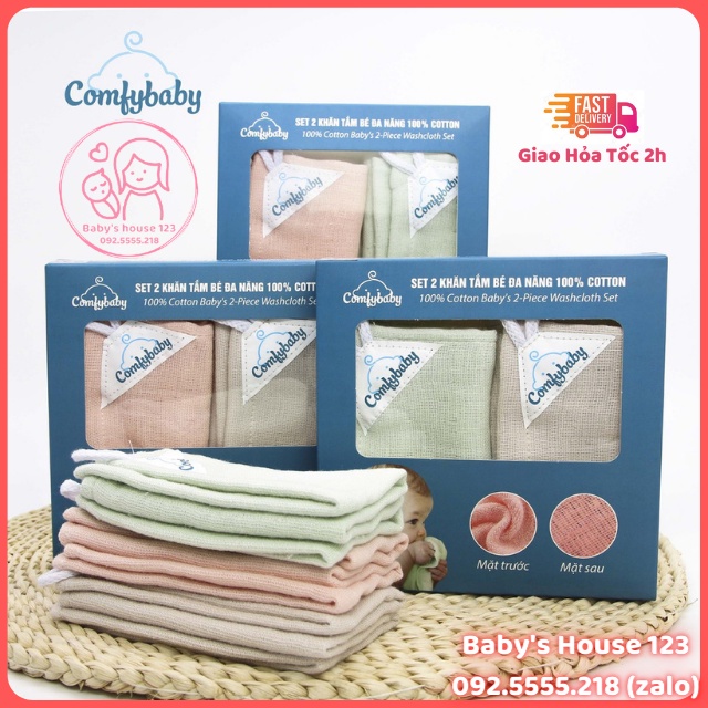 Giới thiệu Set 2 Khăn Mặt - Khăn Kỳ Tắm Cho Bé 100% Cotton Cao Cấp Comfybaby