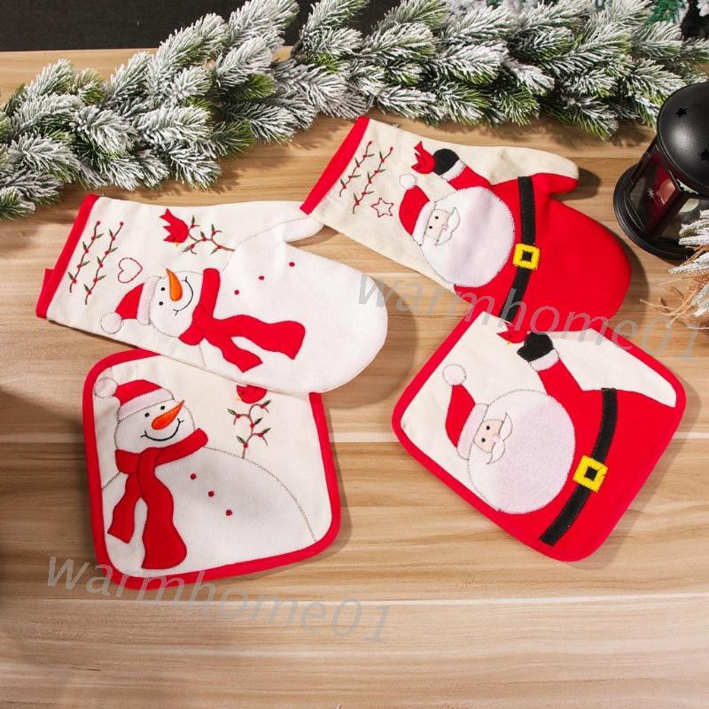 Specifications: Material: Cloth Gloves Size: app.20x33cm/7.87x12.99in Pad Size: app.22x22cm/8.66x8.66in Color: As pictures shown Optional Styles: Santa Claus, Snowman Quantity: 2pcs/set