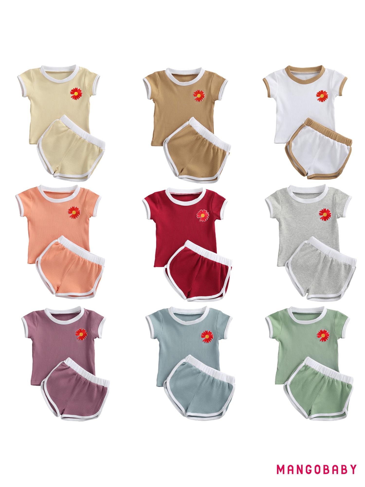 Giới thiệu Bộ Đồ 2 Món Áo Thun Tay Ngắn Cổ Tròn Thêu Hoa Phối Quần Dài Thời Trang Cho Bé Từ 0-24 Tháng Tuổi
