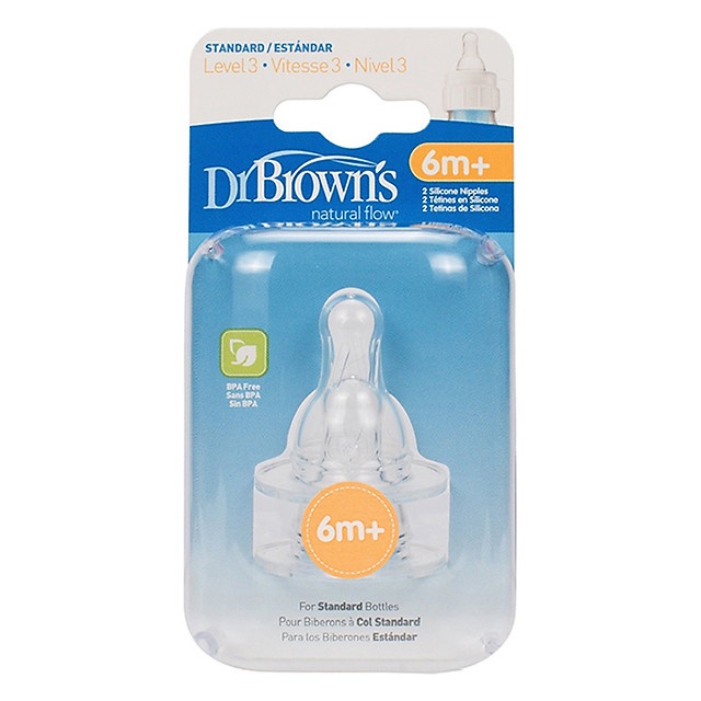 Núm ty số 3 dành cho bé từ 6 đến 9 tháng tương thích với nhiều kiểu mẫu của bình sữa Dr.Brown’s.